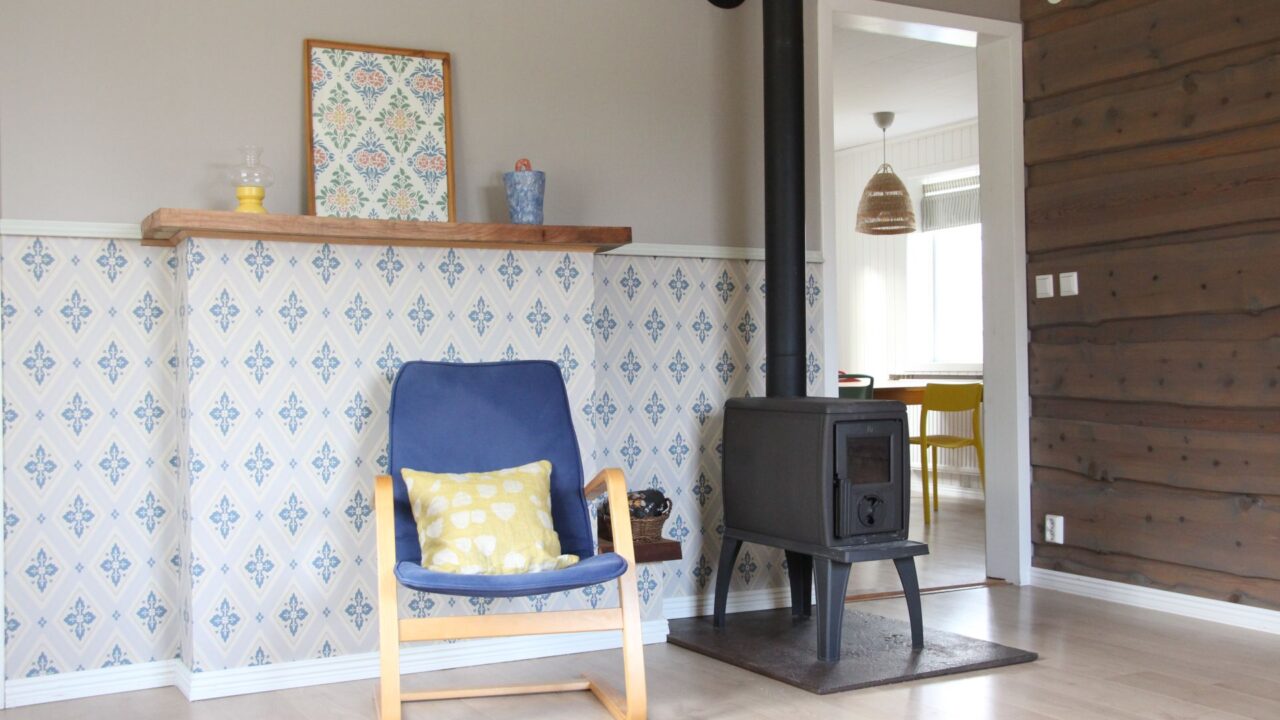 Wifi finns i stugan. Fullt utrustat kök för matlagning med elspis och litet kylskåp. Matbord med två stolar och en vedspis. Privat badrum i huset med toalett och dusch. Sovrummet har två enkelsängar som kan skjutas ihop till en dubbelsäng och två stolar att sitta på. Utemöbler finns. Parkering längst ner i backen.