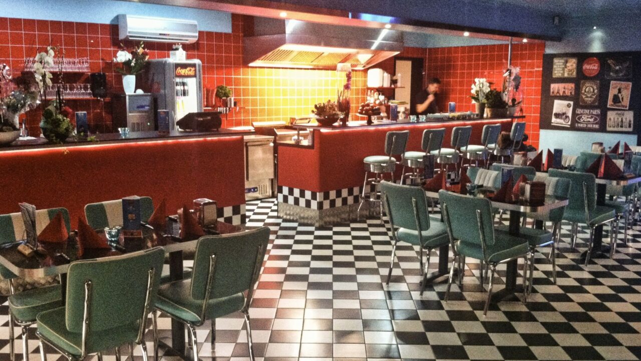 Diner 45 serverar amerikanska rätter i en äkta amerikansk 50-talsmiljö. Fräscha råvaror är en självklarhet på Diner 45! Testa till exempel Fabulous Burgers, Shakes, Fajitas, sallader eller glass och desserter. Födelsedagsfest, avtackning, årsmöte och andra events kan bokas via telefon eller mejl.